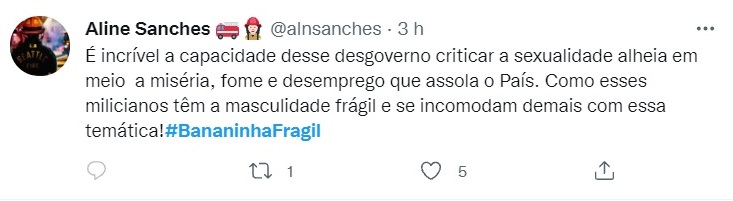 Outra usuária, Aline Sanches, escreveu: "É incrível a capacidade desse desgoverno criticar a sexualidade alheia em meio a miséria, fome e desemprego que assola o País (sic)".