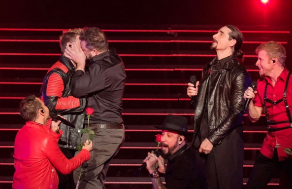 Cantores do N Sync e Backstreet Boys se beijam em show